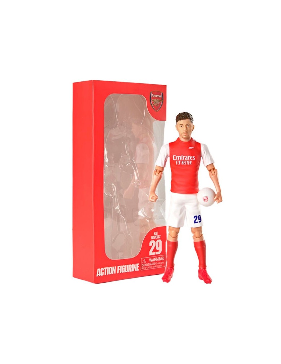 Figurine Kai Havertz – Banbo Toys (Sockers), env. 20 cm de haut. Réalisée en PVC, avec plus de 10 articulations. Livrée avec un ballon et en tenue officielle de Arsenal, finition détaillée et boîte de collection.
