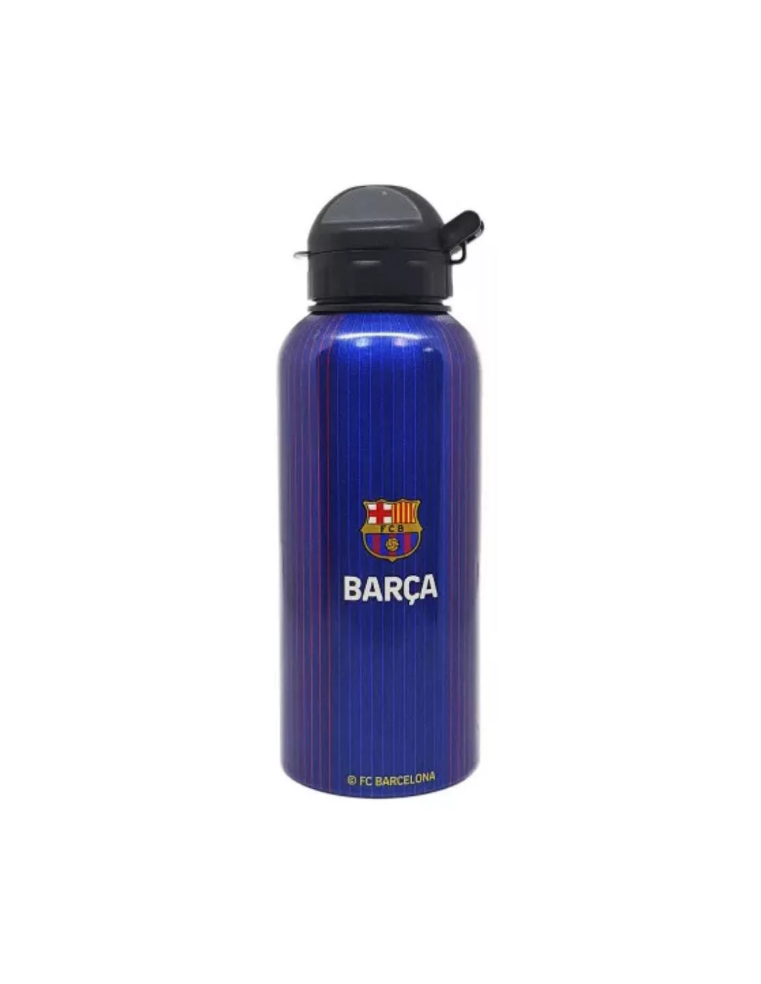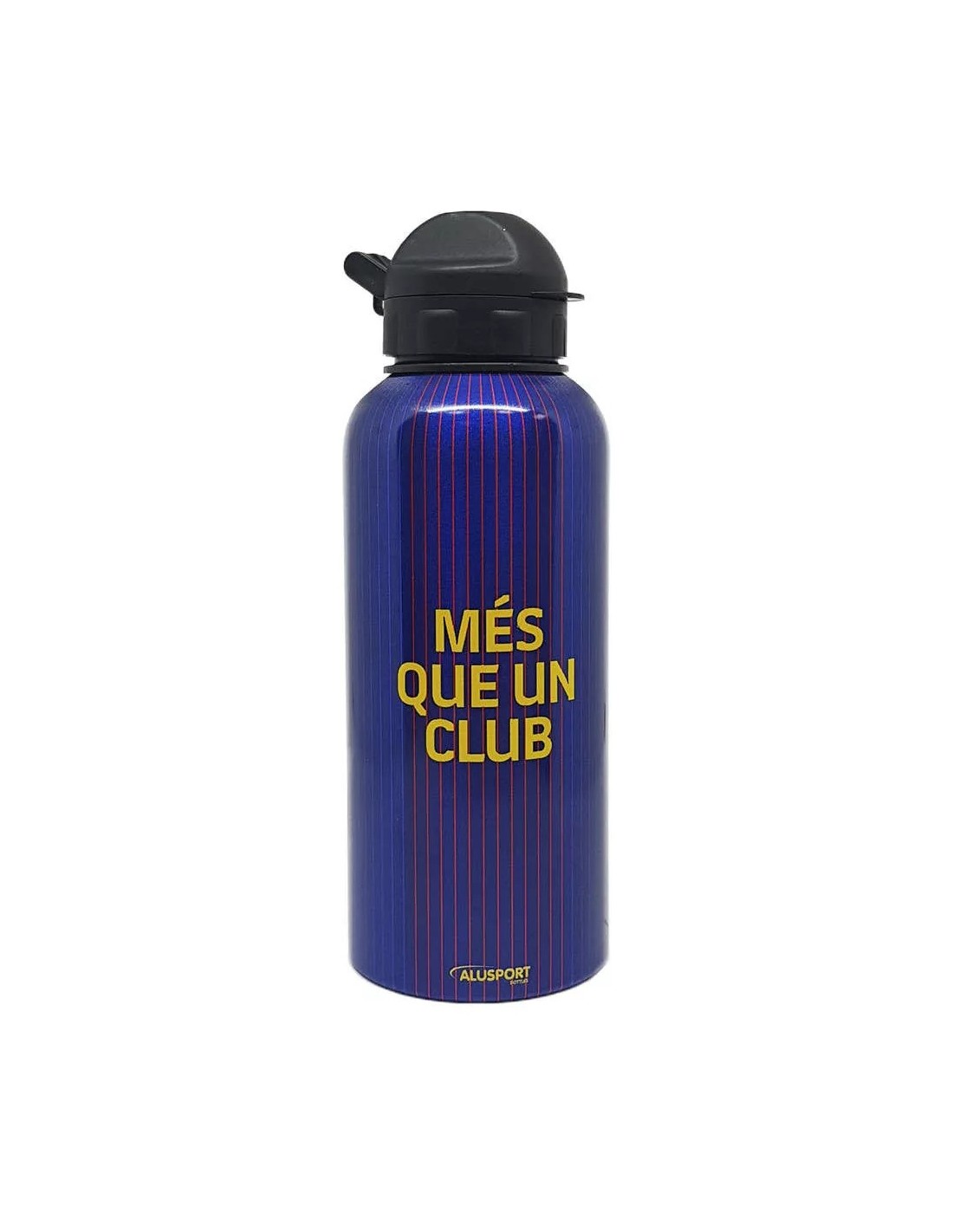 Bouteille en aluminium avec l'écusson monochrome du Fc Barcelone, idéale pour afficher l'écusson de votre équipe avec un design élégant.