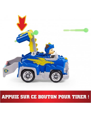 - VÉHICULE PAT' PATROUILLE DE SECOURS 15 CM - Avec des motifs et des détails authentiques sur le thème des dragons, le véhicule Pat' Patrouille de Chase est prêt à se lancer dans des missions de sauvetage palpitantes. Appuyez sur le becquet pour que le lance-projectiles se déploie, puis chargez les deux projectiles et appuyez sur le bouton pour les lancer