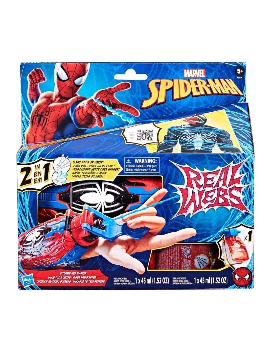 Prêt à lancer des toiles réalistes, comme Spider-Man ? Ce lance-toile Spider-Man utilise une toile liquide innovante qui se transforme en filaments gélatineux avec lesquels les enfants peuvent jouer ! Ce blaster utilise la plus récente technologie de toile et permet de jouer de 3 manières. Les enfants à partir de 5 ans peuvent fixer le blaster sur leur poignet et imiter le geste de Spider-Man qui lance des toiles en appuyant sur le bouton pour lancer des toiles ou de l'eau ! Les enfants peuvent jouer avec la toile et imaginer capturer des vilains comme Spider-Man en enveloppant des figurines ou d'autres jouets Spider-Man (vendus séparément) avec de la toile !