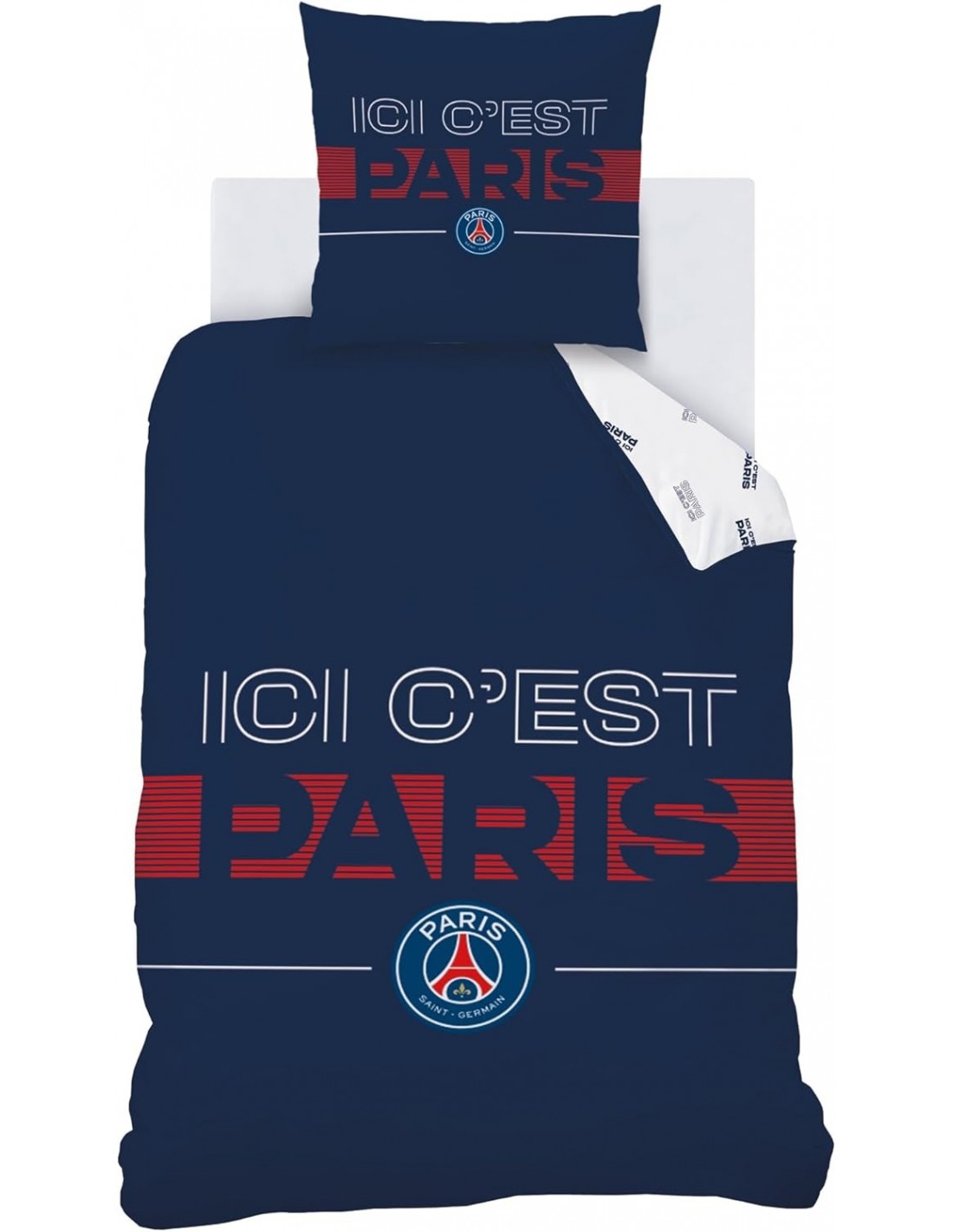 Retrouvez l'équipe du Paris Saint Germain avec cette parure de lit impriméé ici c'esy Paris au recto,et une impression graphique au verso!